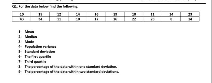 Solved Q1 For The Data Below Find The Following 10 15 12 14 Chegg Com